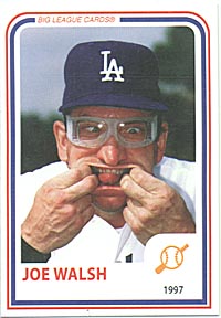 gig the band did. July. An EP combining Rocky Mountain Way, Turn to stone, Meadows and Walk away was released and peaked UK #39. Okt. Walsh leaves Dunhill and Dunhill release a live album You Cant Argue With A Sick Mind from the Don Kirshners Rock TV show with Don Henley and Glen Frey as guests on Help Me Through The Night, the album reaches US #20 and UK #28. Nov. The release of Hotel California should made Joe Walsh to a Super Star the album should reach number one all over the world. Dec. New Kid In Town was released on single. 1977 Jan. Hotel California Album top the Billboard for eight weeks in a row, the album also later on -77 earned a grammy for Record of the year Feb. New Kid In Town peaks at US #1 and earned a Grammy for the best arengements for voices. The band starts touring US and the band played four of Walsh own songs in the set Turn To Stone, Funk #49, Rocky Mountain Way and Walk Away. May. Single Hotel California peaks US #1 and Joe goes on his first world tour. Oct. The band find out that Hotel California is one of the top 15 best-selling albums of all time in any category. 1978 Jan. Joe Walsh and The Eagles go in to the studio to make his fourth soloalbum But Seriously Folks with his buddys Joe Vitale and Willie Weeks the whole Eagles with their new member Timothy B Schmit is involved in the album. Gleen Frey arrange all choirs and Frey, Henley and Schmit do all the choirs on the album. Other musicians on the album is Jay Fergusson, Jody Boyer and Joey Murcia. The Album was produced by Bill Szymczyk. In The City was recorded for this album but was kept for The Long Run Album. At the same time The Eagles started working on The Long Run Album. June. Lifes Been Good reaching US #12 and UK #14. Aug. Recording sessions for making the next Eagles album and lasted to long Joes best selling album But Seriously Folks was released 12 of aug. earning Joes first Platinum Disc, the album peaked US #8 and UK #16. Nov. Dunhill release The Best Of Joe Walsh including some James Gang tracks. The album makes US #71. 1979 Feb. In the City is in the Movie Warriors that was released half a year before The Long Run enter the charts. Sept. The Long Run was released the 24:th of September 1979 after over 1½ years recording and the band start touring again now with hired extra musicians like Joe Vitale playing Drums and Keyboards and Davd Sandborn playing Saxophone. 1980 Jan. Joe Walsh ran for a lunatic campaign for President in 1980; one of the planks of his platform was to make Life's Been Good the new national anthem, free money to everybody was another thing in his election campaign. June. The movie Urban Cowboy was released and Joes not on any solo album song All Night Long was in the movie and reached US #19. July. 31:st of July the Eagles did their last gig at Long Beach a gig named in the rock history "Long Night At Wrong Beach". The band was playing on a benefit for a friend of Gleen Frey and Don Felder were not to happy about it and when he had grett the mans wife she said Nice To Meet You Felder says Nice To Meet You To......... I guees! Frey was beside him and get angry. Frey and Felder spent the entire show describing to each other the beating each planned to administer backstage. "Only three more songs until I kick your butt, pal," Frey recalls Felder telling him near the end of the band's set. Felder recalls Frey making a similar threat to him just as they began to sing The Best Of My Love. Felder told his guitar roadie that he wanted the acoustic guitar he just had played in the dressing room after the show. When the show was over Don ran out to his loge and smashed the guitar to pieces and when he was done and turned around Glenn was standing behind him with his friend and his wife. A week later Irving Azoff called Henley, Felder, Walsh and Schmit and told them the band was quit. Walsh started to record his fifth solo album. 1981 Aug. Irving Azoff asked Joe to write a song for the movie Fast Time At Ridgemont High that he should co produce. Walsh came up with the song Waffle Stomp 1982 Mar. Joe Walsh Produce Ringo Starrs Album Old Wave for RCA with musicians like Gary Broocker, John Entwistle and Eric Clapton . July. Joe asked Bill Szymczyk to produced his new album and came up with an Idea that he wanted to get back to the old days (probably tired of the Eagles days in the Studio) he decided to rent a 2 16 track non dolby mobile truck, you cant do that said Szymczyk, youre fired said Walsh, Maybe we can do that said Szymczyk and they did Sept. They go to the Catalina Island outside L.A. for a 14 days session and recorded 6 of the album You Bought It, You Name It 10 tracks in a old ballroom on the island. Joe wanted a band and the band was Joe Vitale Drums, Choclate Perry on Bass and Waddy Wachtel on Guitar, again Eagles mates were involved, Don Felder on guitar and Timothy B Schmit and Don Henley on backing vocals. 1983 Jan. The other four tracks for You Bought It, You Name It was recorded in studio. Joes new band was going to Canada to be in John Candys Show "The Fishin´ Musician" May. You Bought It, You Name It was released with the single Space Age Whiz Kids. July. Space Age Whiz Kids Peakes at US #52 and the album You Bought It, You Name It makes it US #48. Joe Aug. Walsh is asked to support Stevie Nicks were Waddy Wachtel was the Musical Director and he agree. Walsh open it up with Wachtel in his band. Joe and Stevie didnt end up to well in the beginning of the tour but after Joe took Nicks to the park were a fountain for his daugther Emma was placed after here dead and told her that the only thing Emma complained about was that there wasnt a fountain for small people in the park so Joe put one up there in memory of his daughter. Stevie immortalized this story in her song "Has Anyone Ever Written Anything For You" on her 1985 Rock A Little album after that day Joe and Stevie were a pair for few years. Their first gig was "US Festival" 1984 Joe Walsh next album The Conf