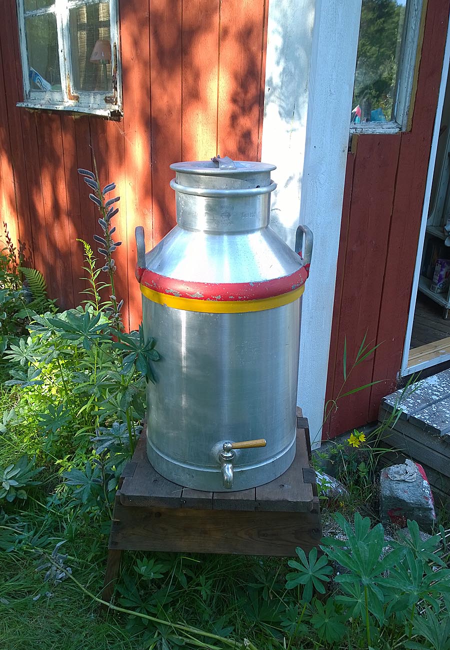 25 liters dunk hade vi och som tur var så hade grannen Torgny